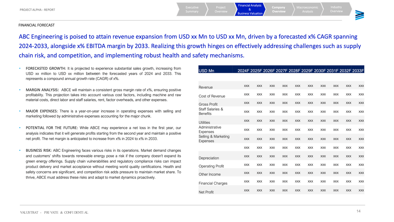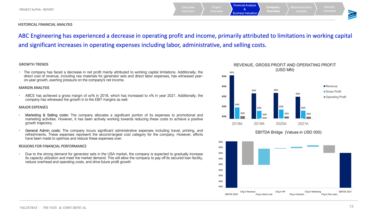 In the financial analysis section, a comprehensive evaluation will be conducted, encompassing a detailed review of historical financial performance, an in-depth analysis of growth catalysts, assessment of key operating metrics, projection forecasting, and the identification of pivotal value drivers.
