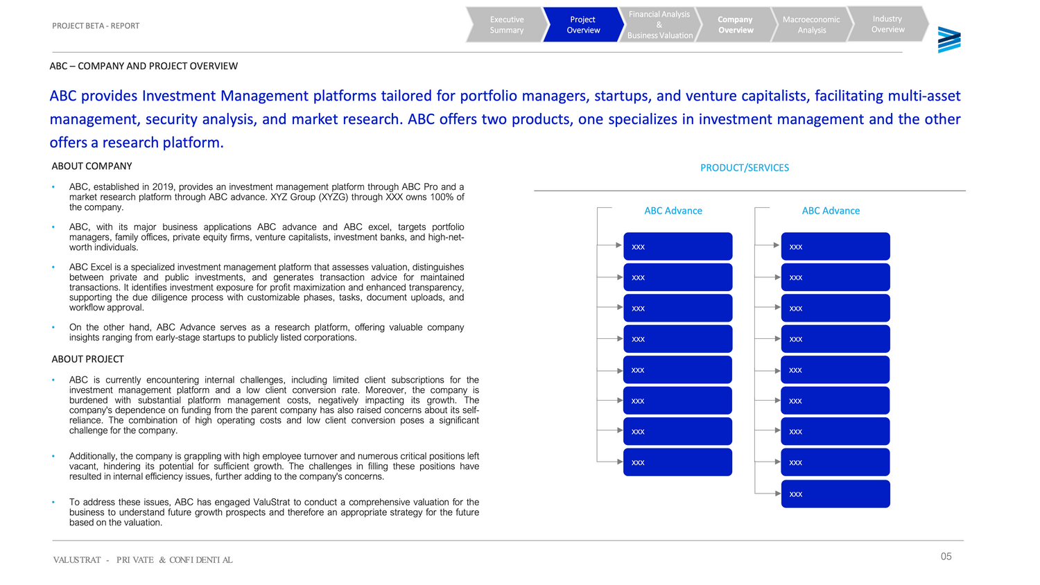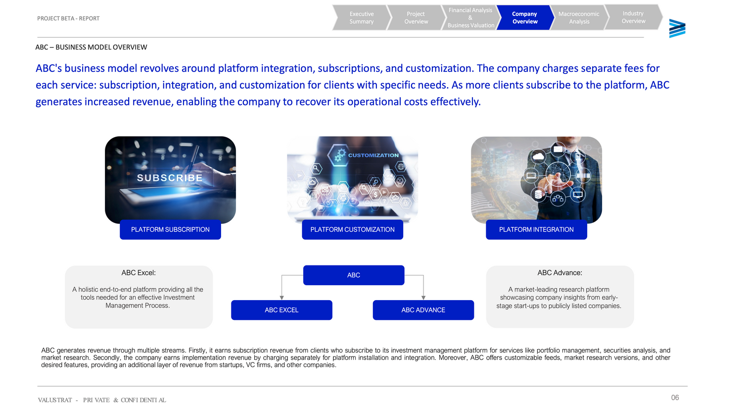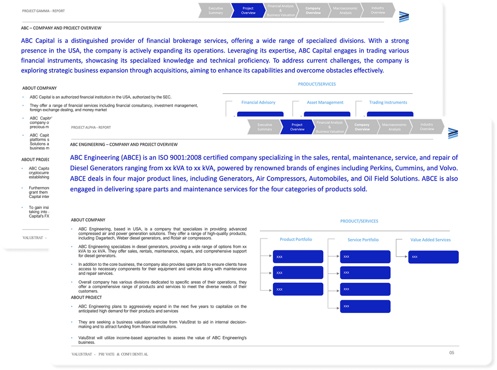 Our reports can be used for investment analysis, transactions, financial reporting, investor pitches, partnership agreements, and other key decisions.
